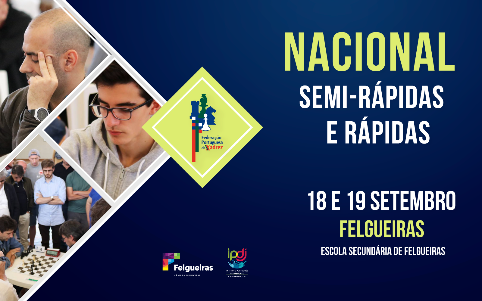Felgueiras acolhe, durante os próximos dias 18 e 19 setembro, os Campeonatos Nacionais de partidas Semi-rápidas (Individual) e de partidas Rápidas (Individual e Equipas) numa realização conjunta do Município de Felgueiras e da Federação Portuguesa de Xadrez.